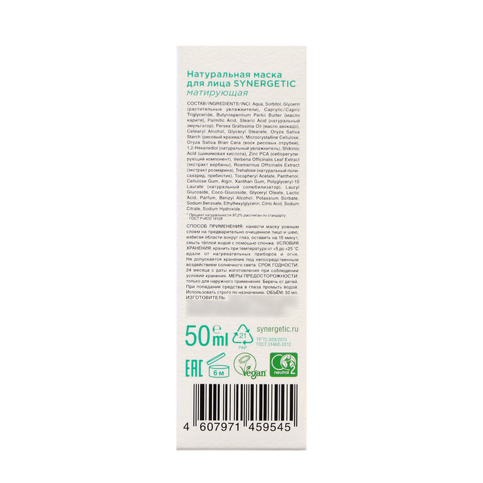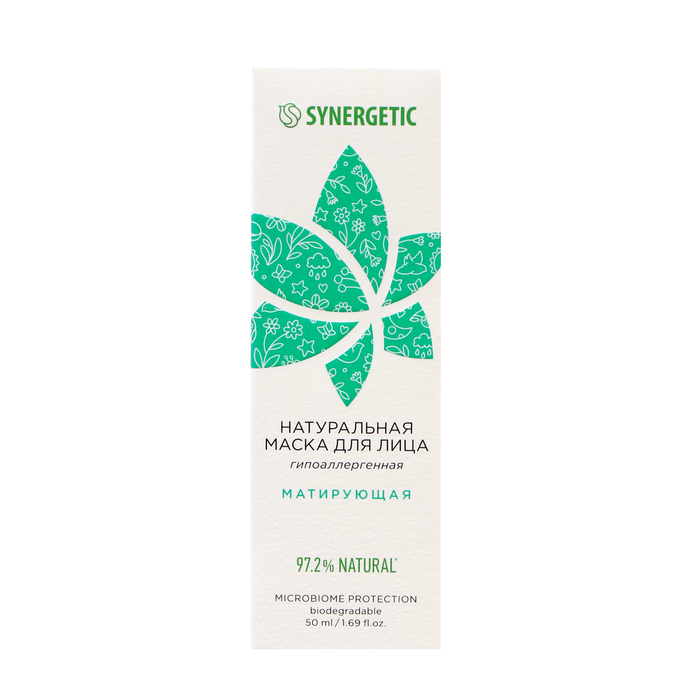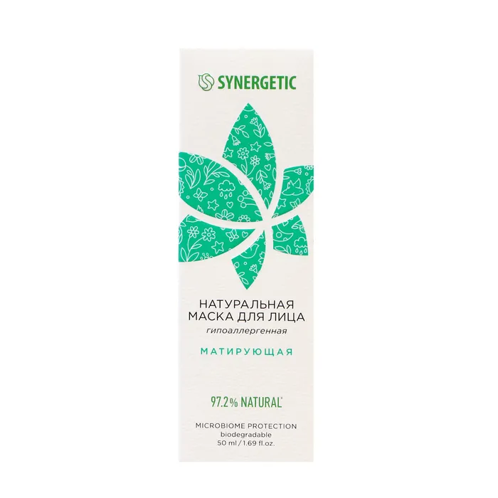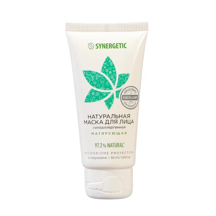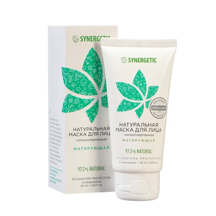 Натуральная маска для лица SYNERGETIC матирующая бережно ухаживает и матирует кожу лица, придавая ей свежий и сияющий вид.