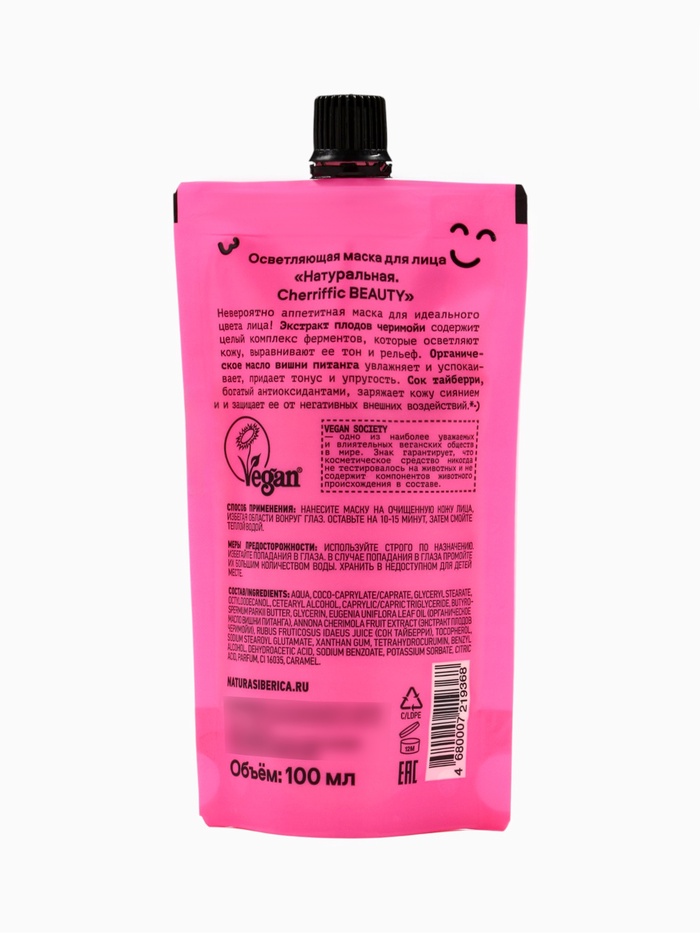 Маска для лица осветляющая, Organic Kitchen «БИО. Натуральная Cherriffic Beauty», 100 мл — Характеристики