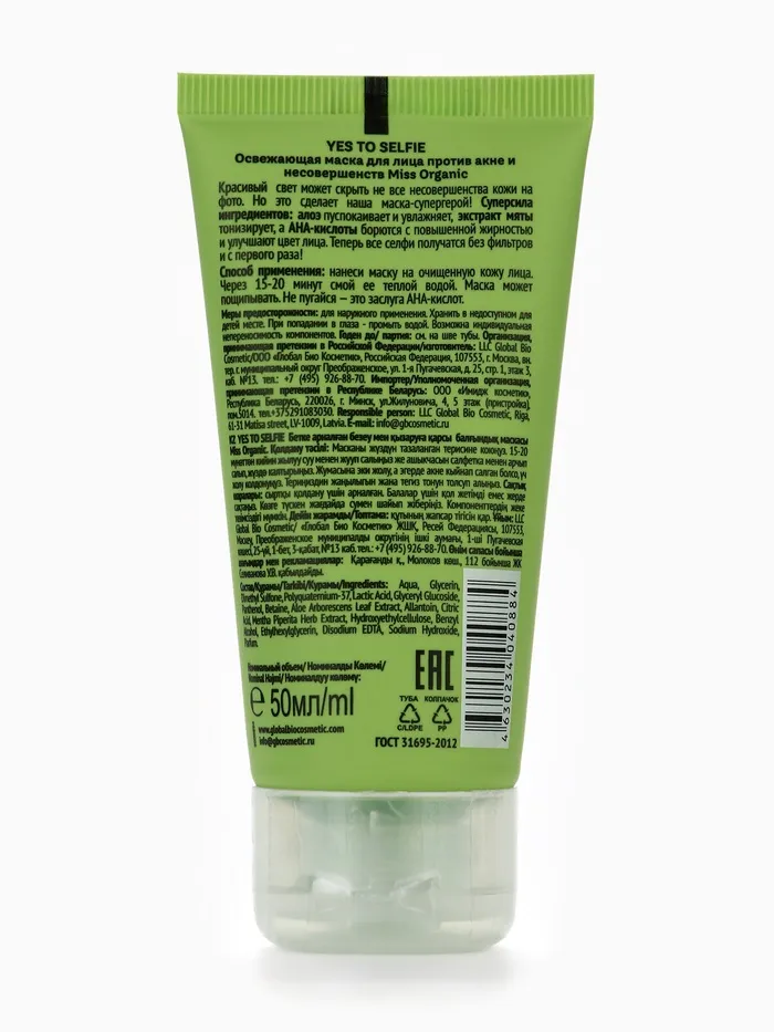 Маска для лица освежающая Yes to selfie, против акне и несовершенств, 50 мл, Miss Organic — Характеристики