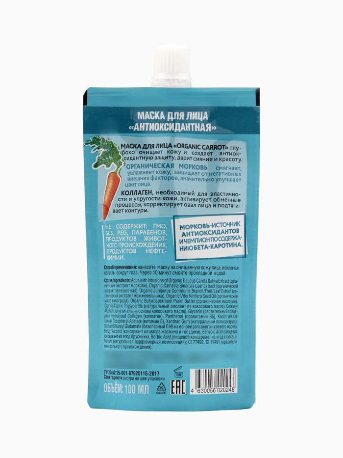 Маска для лица Planeta Organica Eco Carrot «Антиоксидантная», 100 мл — Характеристики