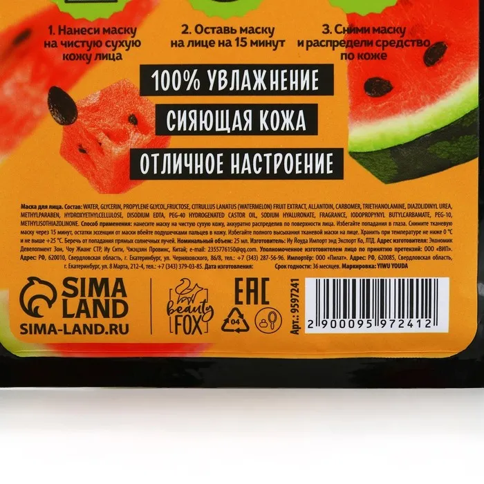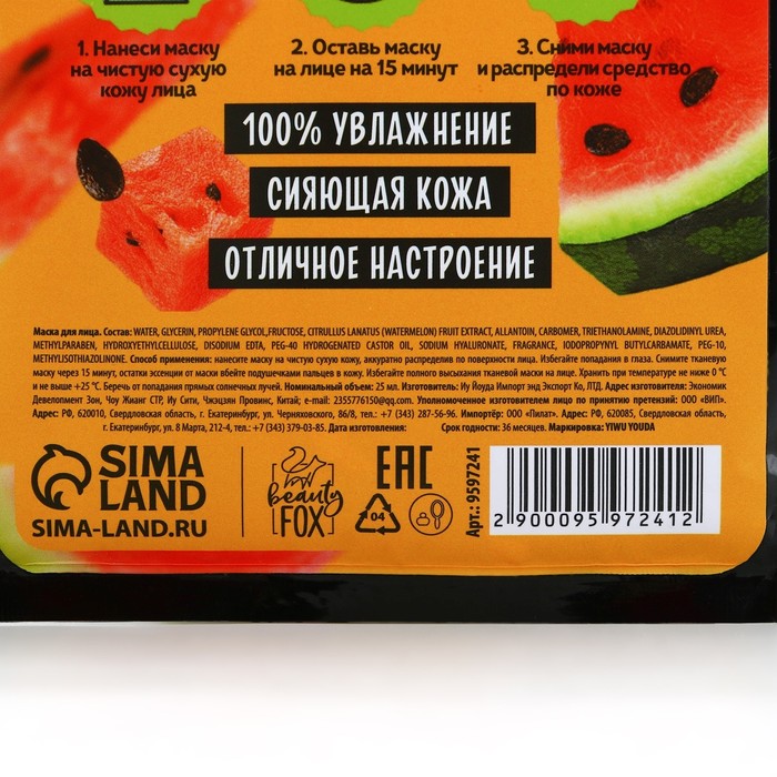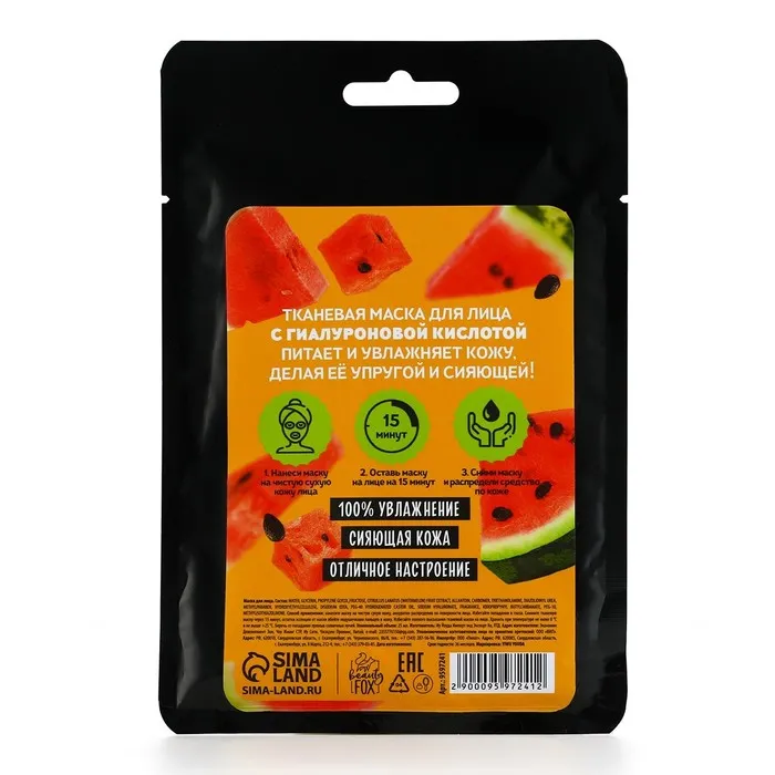 Маска для лица тканевая с гиалуроновой кислотой и экстраком арбуза Hello, I am real, 1 шт, BEAUTY FOOD — Характеристики