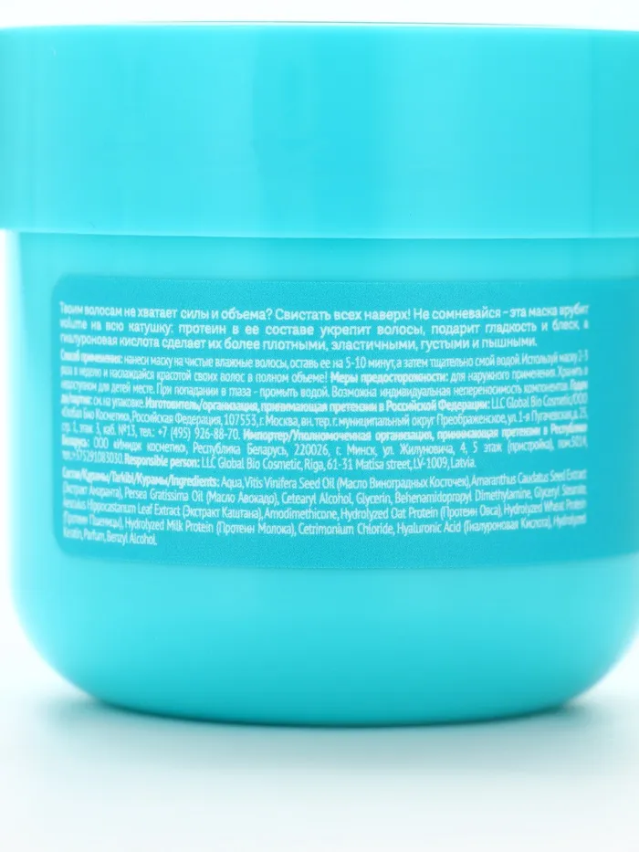 Состав: Aqua, Vitis Vinifera Seed Oil (Масло Виноградных Косточек), Amaranthus Caudatus Seed Extract (Экстракт Амаранта), Persea Gratissima Oil (Масло Авокадо), Cetearyl Alcohol, Glycerin, Behenamidopropyl Dimethylamine, Glyceryl Stearate, Аesculus Hippocastanum Leaf Extract (Экстракт Каштана), Amodimethicone, Hydrolyzed Oat Protein (Протеин Овса), Hydrolyzed Wheat Protein (Протеин Пшеницы), Hydrolyzed Milk Protein (Протеин Молока), Cetrimonium Chloride, Hyaluronic Acid (Гиалуроновая Кислота), Hydrolyzed Keratin, Parfum, Benzyl Alcohol.