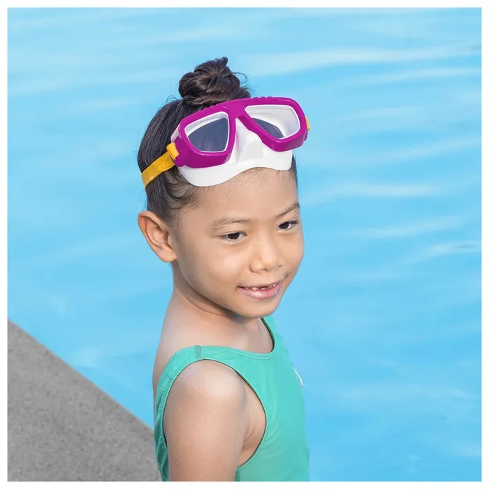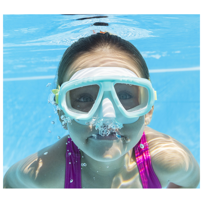 Маска для подводного плавания подойдёт для детей от 3 лет. Её можно использовать в бассейне и открытых водоёмах.