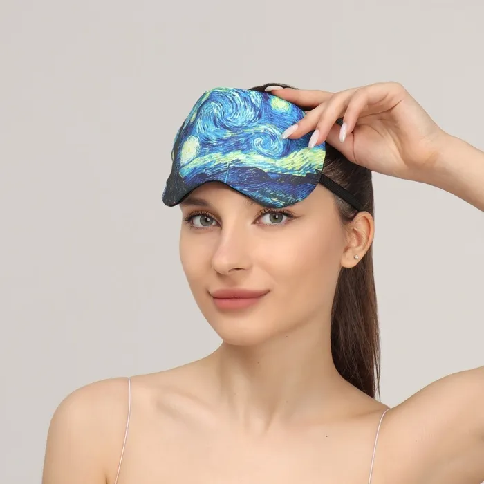 Маска для сна с гелевым вкладышем «Ван Гог», 19 × 10 см, резинка одинарная, цвет синий — Характеристики