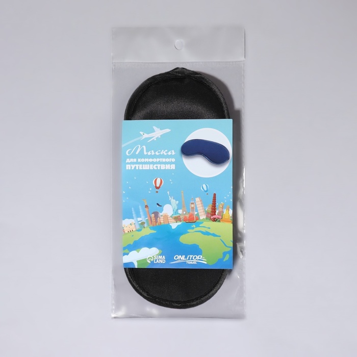 Маска для сна, сатиновая, двойная резинка, 19×8.5 см, цвет чёрный — Характеристики