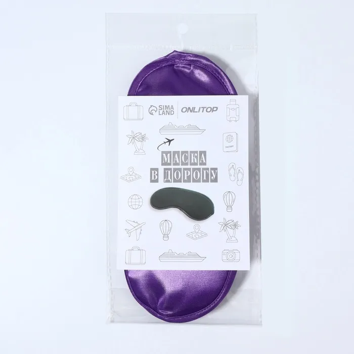 Маска для сна, сатиновая, резинка одинарная, 19×8.5 см, фиолетовая — Характеристики