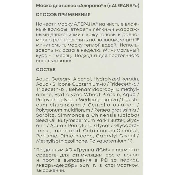 Маска ALERANA для интенсивного питания, оздоровления и восстановления структуры волос. Маска содержит комбинацию активных компонентов, которые комплексно воздействуют на фолликулы и по всей длине волос: