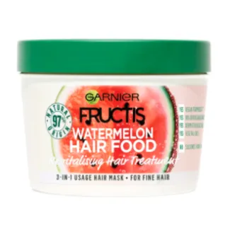 Маска для тонких волос с приятным ароматом арбуза от Garnier состоит на 98% из натуральных ингредиентов и имеет 3 способа применения: