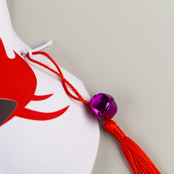 - Яркий красный цвет маски символизирует удачу и защиту, а подвески добавляют ей элегантности.