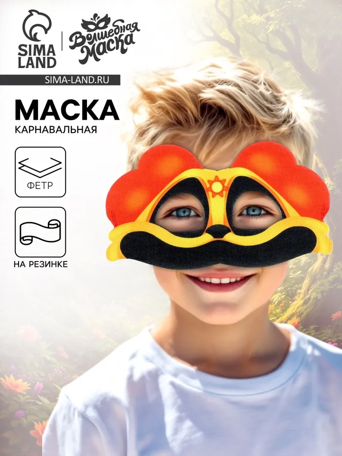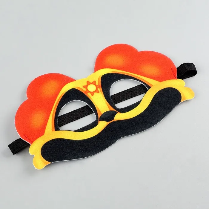 Карнавальная маска «Зверята улыбата. Щенок Денёк» — это милый и оригинальный аксессуар для любого праздника. Маска выполнена из мягкого фетра оранжевых оттенков и украшена забавной мордочкой щеночка. Она надежно фиксируется на голове с помощью резинки.