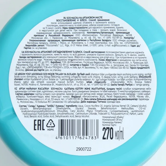 Состав: aqua, cocos nucifera oil, argania spinosa kernel oil, cetearyl alcohol, glycerin, behenamidopropyl dimethylamine, glyceryl stearate, behentrimonium methosulfate, C10-40 isoalkylamidopropylethyldimonium ethosulfate, cetyl alcohol, phenyl trimethicone, cyclopentasiloxane, laurdimonium hydroxypropyl hydrolyzed keratin, amodimethicone, cetrimonium chloride.
