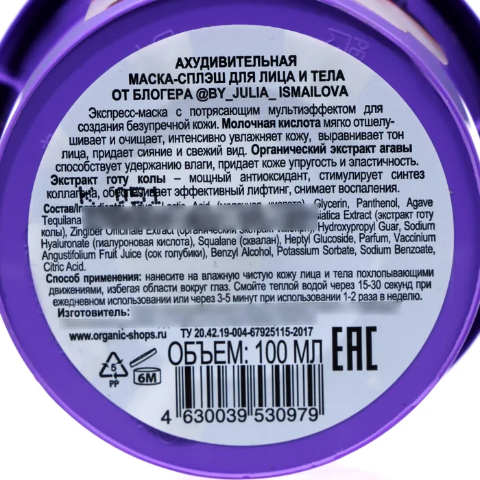 Регулярное использование маски-сплэш для лица и тела Organic Kitchen "Ахудивительная" поможет сохранить здоровье и красоту вашей кожи, а также обеспечит ей необходимое увлажнение и питание.