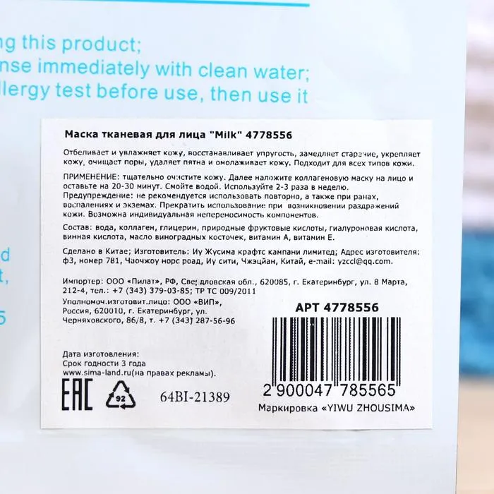 Примечание: Возможна индивидуальная непереносимость компонентов продукта. Рекомендуем проверить на аллергическую реакцию перед применением, нанеся средство на запястье или внутренний сгиб локтя.