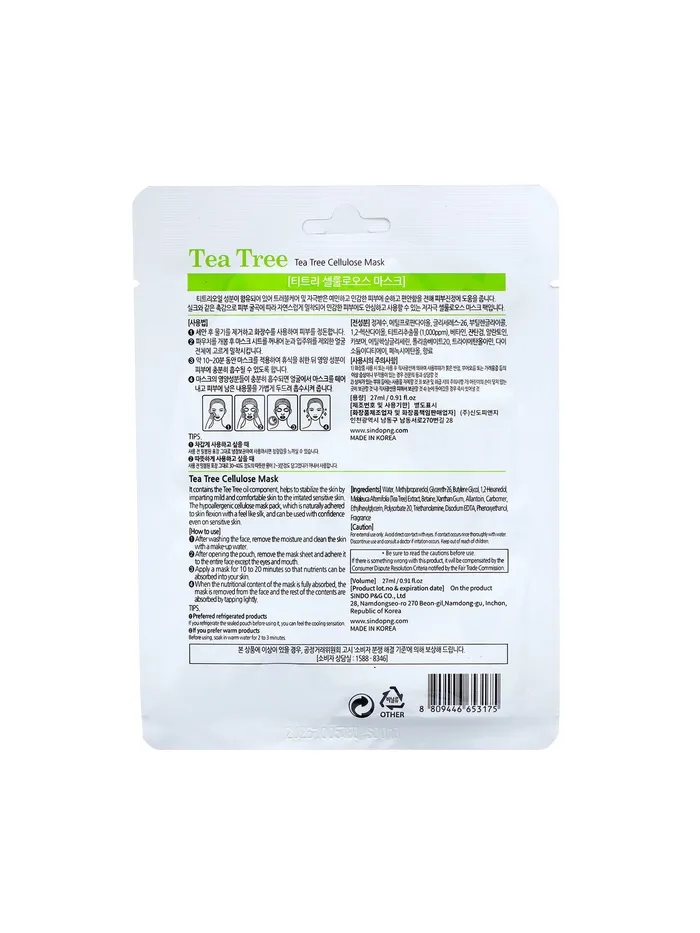 Тканевая маска для лица помогает контролировать выработку себума, успокаивает и освежает. Масло чайного дерева поддерживает чистый и здоровый вид кожи, снимает раздражение. Маска из целлюлозы плотно прилегает к коже и дарит ощущение комфорта.