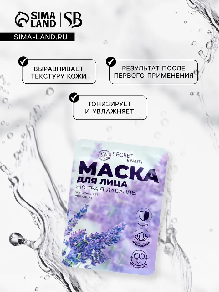 Маска тканевая увлажняющая для лица «Secret Beauty» с экстрактом лаванды — Характеристики