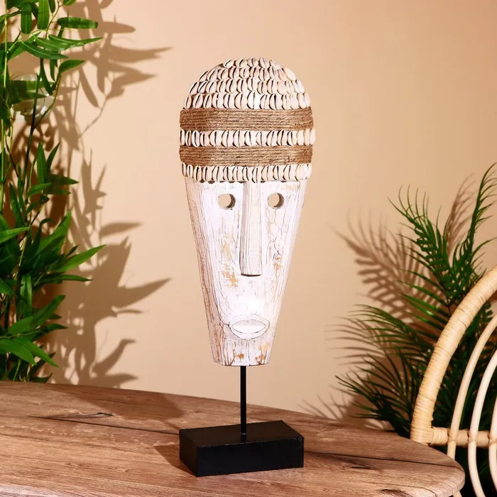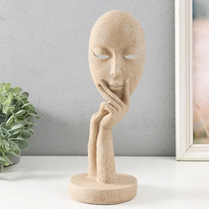 Сувенир полистоун "Маска - лицо девушки" песочный 11,5х11,5х29 см