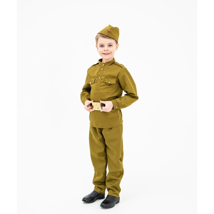 Маскарадный костюм военного для мальчика, пилотка, ремень, габардин, р-р 30, рост 110-116 — Характеристики