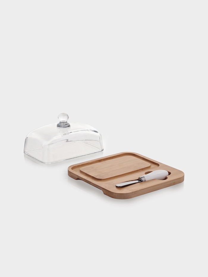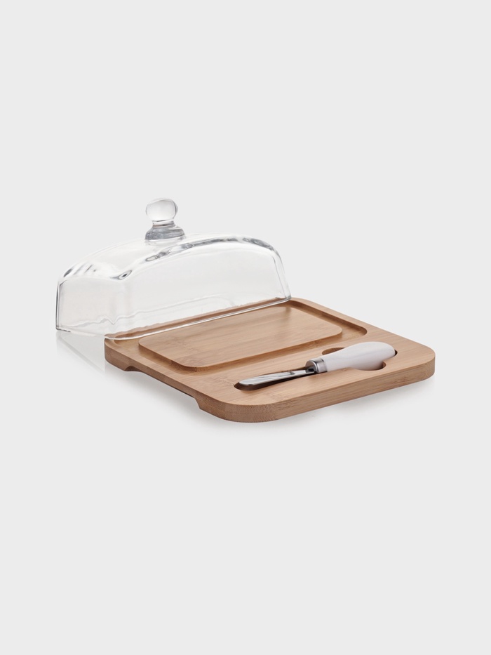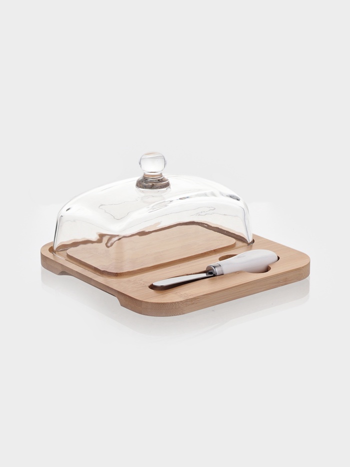 - Удобный нож в комплекте: короткое лезвие и удобная ручка позволяют аккуратно нарезать сливочное масло или мягкий сыр. Нож хранится на подставке — не теряется и всегда готов к использованию.
