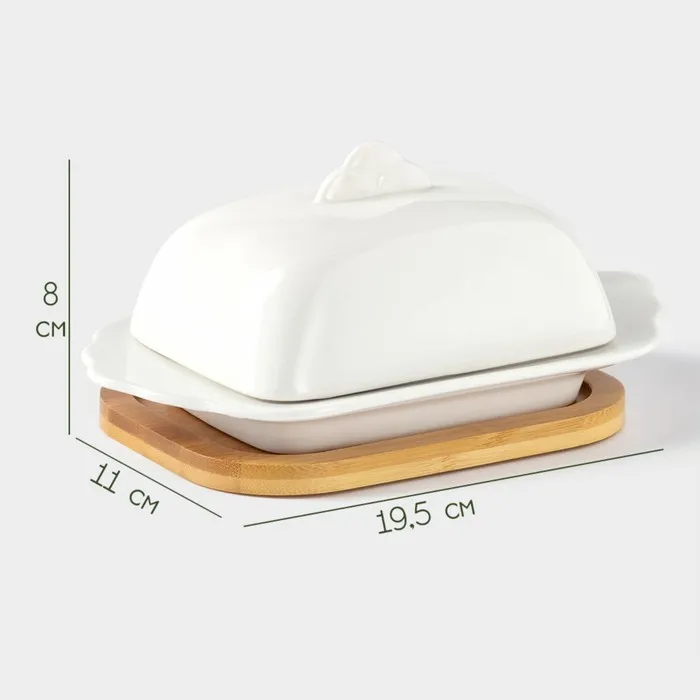Маслёнка BellaTenero, 320 мл, на бамбуковой подставке, фарфор, белая — Характеристики