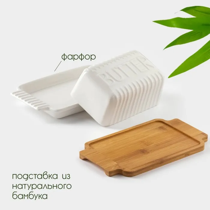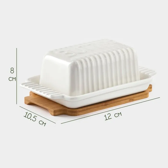 Маслёнка BellaTenero, 500 мл, на бамбуковой подставке, фарфор, белая — Характеристики