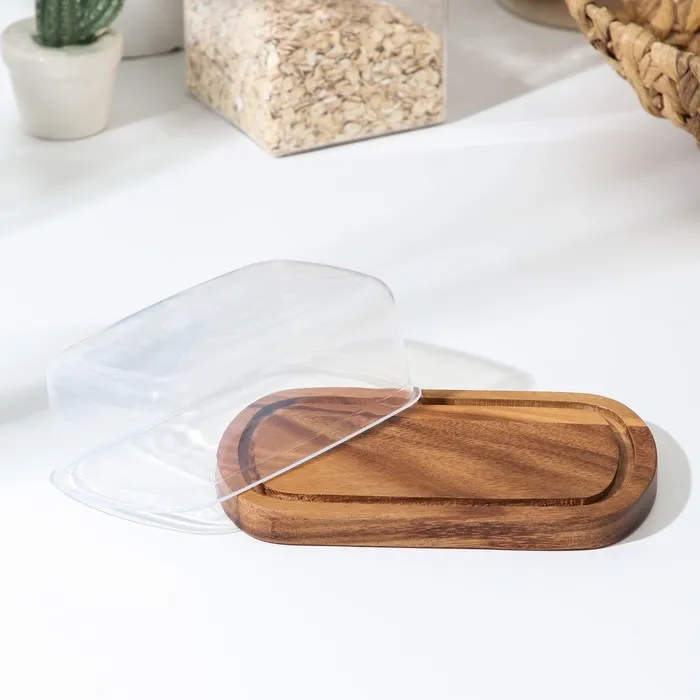 Маслёнка деревянная с крышкой, 17×11×9 см, акация — Характеристики