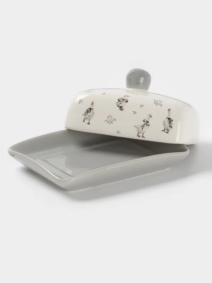 Эта маслёнка станет не только практичным предметом, но и элементом декора. Керамическая маслёнка с рисунком привнесет в ваш дом атмосферу уюта и тепла. Маслёнка «Гуси» Доляна - отличный выбор для создания особенной атмосферы на вашей кухне.