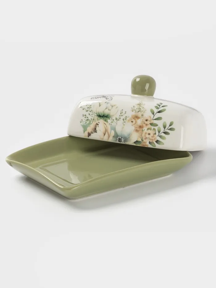 Очаровательная маслёнка, выполненная из прочного доломита с нежным цветочным рисунком. Идеально подойдет для хранения сливочного масла, сохраняя его свежесть и аромат. Размеры: 17x12x8.5 см.
