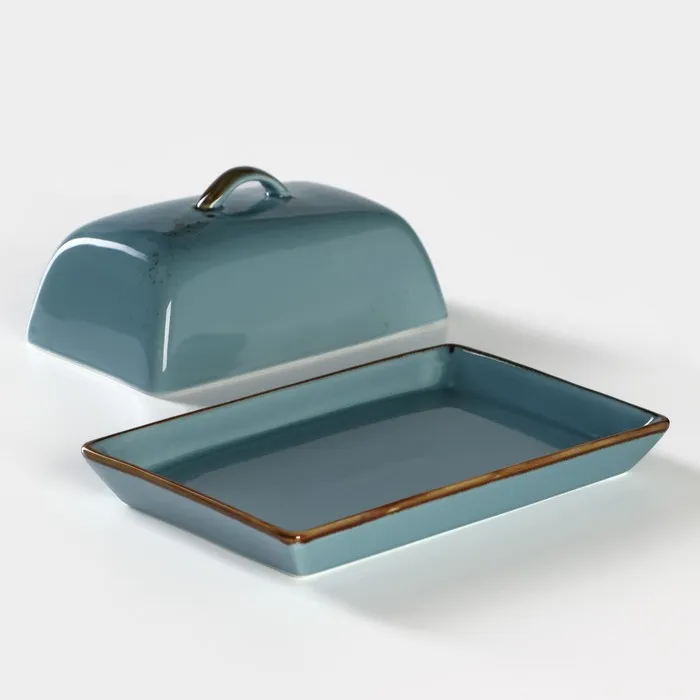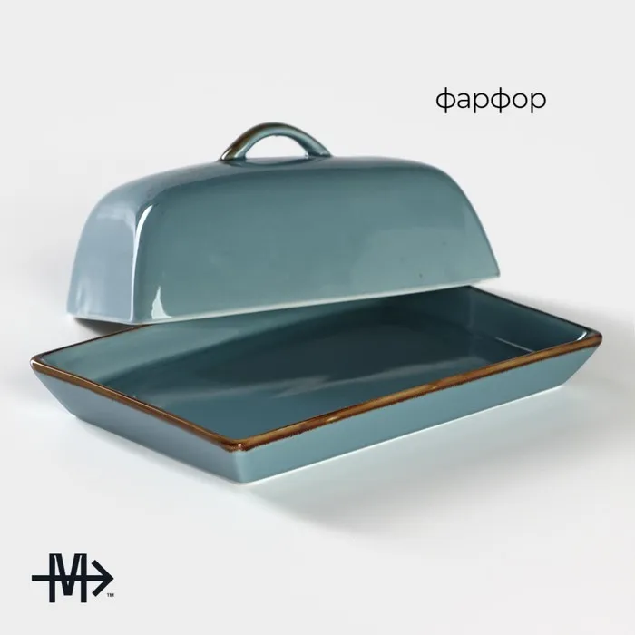Маслёнка Magistro «Церера», 18×12 см, фарфор, голубая — Характеристики
