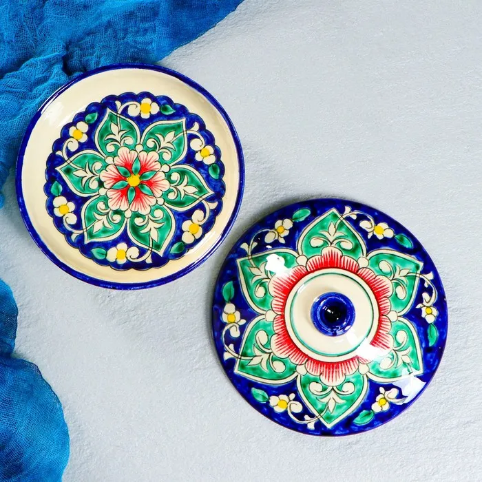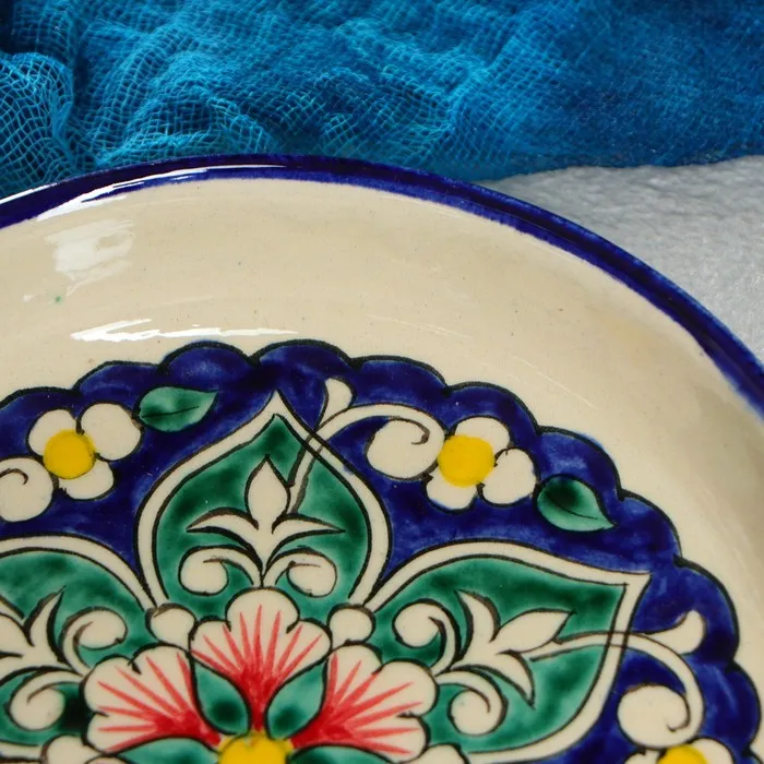 Маслёнка Риштанская Керамика «Цветы», 17 см, синяя — Характеристики