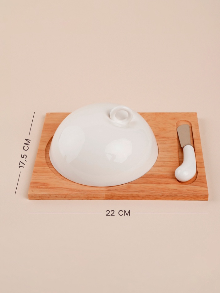 Маслёнка SL Home «Тренто», 22×17.5 см, на деревянной подставке, с ножом для масла, фарфор, белая — Характеристики