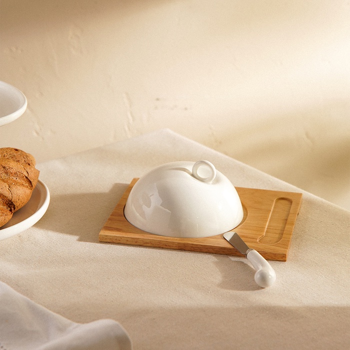 - Универсальный дизайн: минималистичный стиль и отсутствие рисунков позволяют сочетать маслёнку с любой другой посудой на вашем столе.