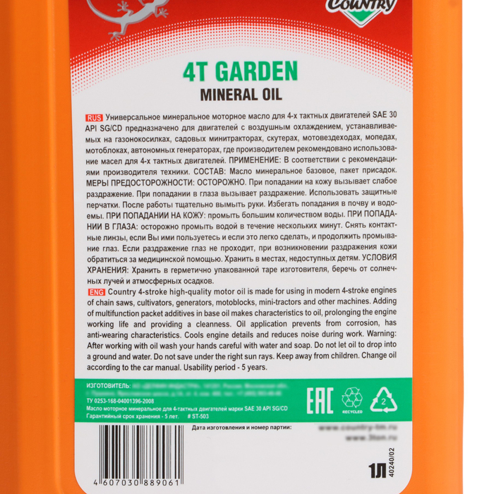 Высококачественное моторное масло разработано специально для применения в современных 4-тактных двигателях газонокосилок, культиваторов, генераторов, мотоблоков, мини-тракторов и другой техники. Добавление в состав многофункционального пакета присадок последнего поколения придает маслу уникальные свойства, продлевая ресурс работы двигателя и поддерживая его чистоту. Масло обеспечивает антикоррозионные и противоизносные свойства. Охлаждает детали двигателя и уменьшает шум при работе.