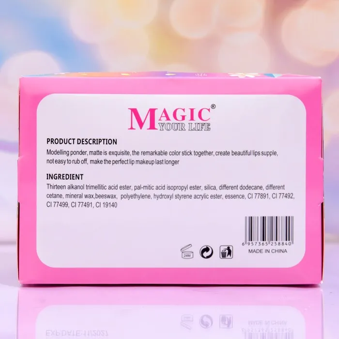 Состав: thirteen alkanol trimellitic acid ester, palmitic acid isopropyl ester, silica, different dodecane, different cetane, mineral wax,beeswax, polyethylene, hydroxyl styrene acrylic ester, essence, Cl 77891, 77492, 77499, 77491, CI 19140.