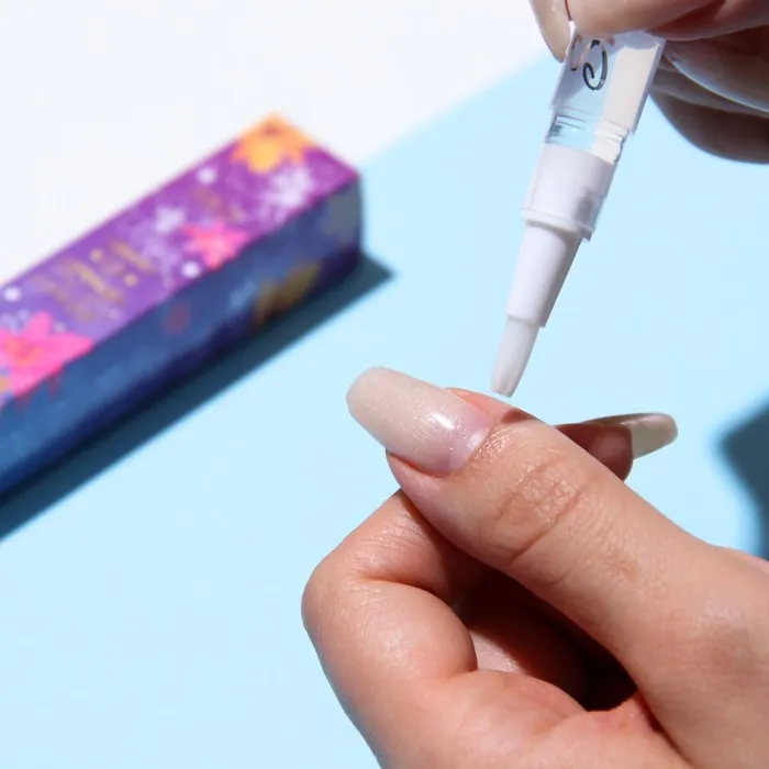 Способ применения: прокрутите основание несколько раз, пока масло не появится на кисточке. Распределите с её помощью средство по всей кутикуле. Подождите 2-3 минуты до впитывания средства. Вотрите остатки лёгкими массажными движениями.