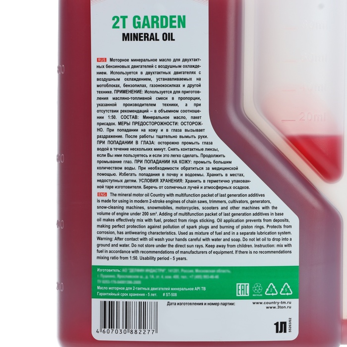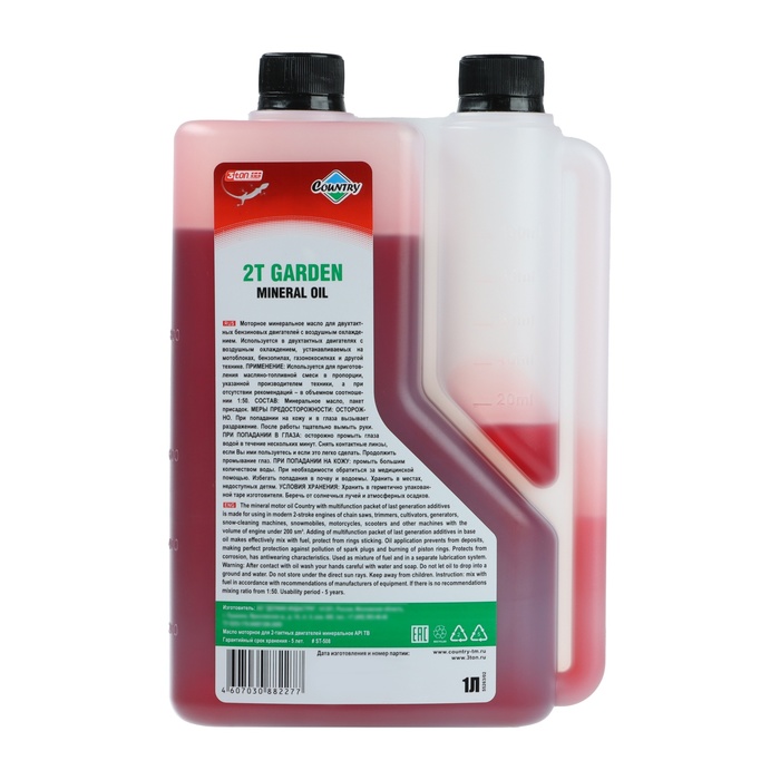Предназначено для систем с инжекторной подачей масла или систем, работающих на смеси масла с топливом. Специальные добавки предотвращают формирование отложений на поршнях, приводящих к залипанию компрессионных колец и обеспечивают гладкую работу двигателя. При использовании Country 2T резко снижается содержание вредных веществ в выхлопных газах.