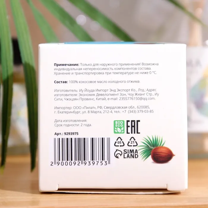 Состав: 100% натуральное кокосовое масло холодного отжима.