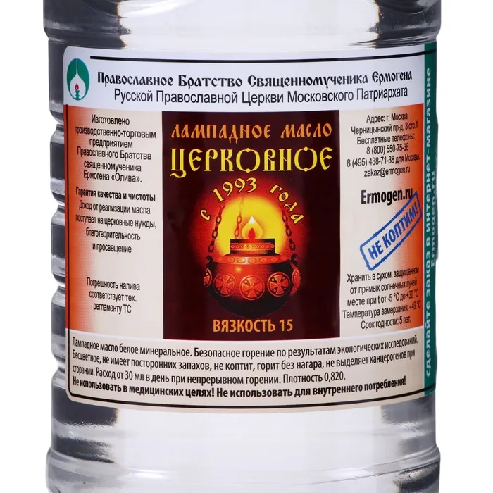 В настоящее время традиционное оливковое масло для лампад было заменено различными видами непищевых масел. Лучшим из них считается вазелиновое масло, которое имеет наиболее высокую степень чистоты. «Ермоген» производит качественное лампадное масло для использования в храмах и дома. Масло высшей категории «Церковное» имеет сертификат соответствия Ростест и отличается высоким качеством: не имеет запаха, не коптит при горении, не выделяет вредных веществ. Чистота и безопасность продукта доказана экологической экспертизой.