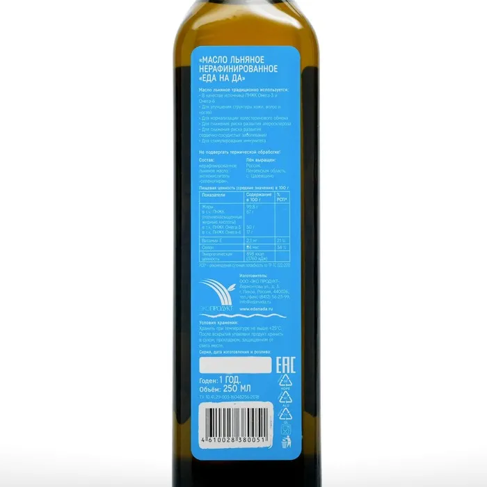 Масло льняное Еда на Да, 250 мл — Характеристики