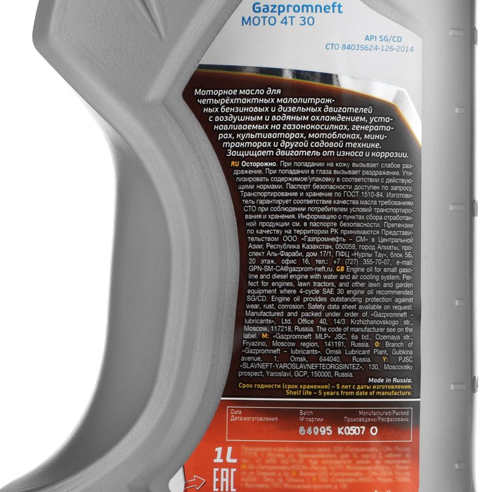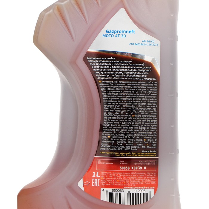 Gazpromneft Moto 4T 30 – сезонное (летнее) моторное масло, предназначенное для использования в четырехтактных бензиновых и дизельных двигателях садовой техники – газонокосилок, культиваторов, генераторов, мотопомп и т.п. Благодаря использованию базовой основы глубокой очистки и сбалансированного пакета присадок масло обладает высокой стабильностью к окислению, запасом противоизносных свойств и эффективно защищает двигатель от отложений в условиях высоких рабочих температур.