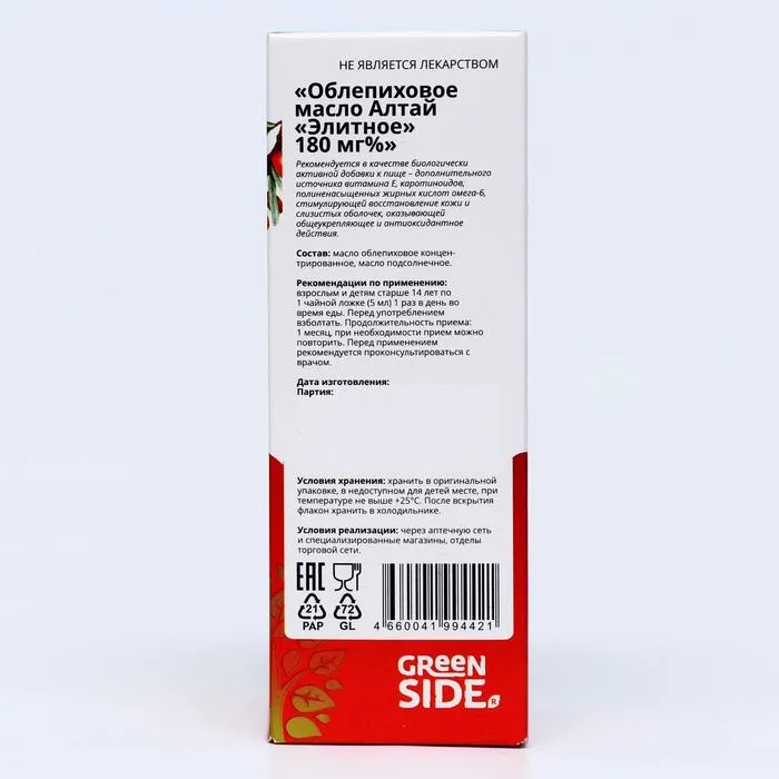 Состав: масло облепиховое концентрированное, масло подсолнечное.