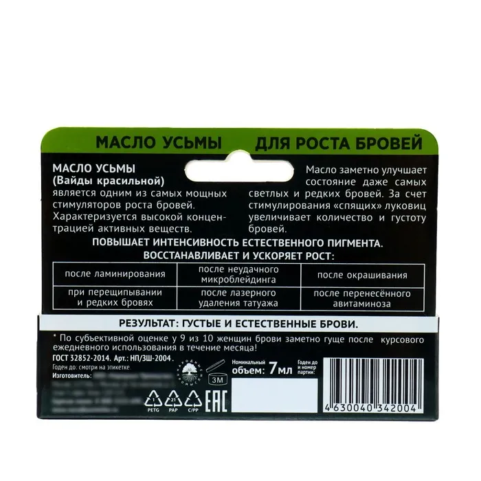 Масло УСЬМЫ для роста бровей Золотой шёлк, 7 мл — Характеристики