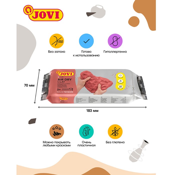 Масса для лепки JOVI, самозатвердевающая, полимерная, 500 г, терракота — Характеристики