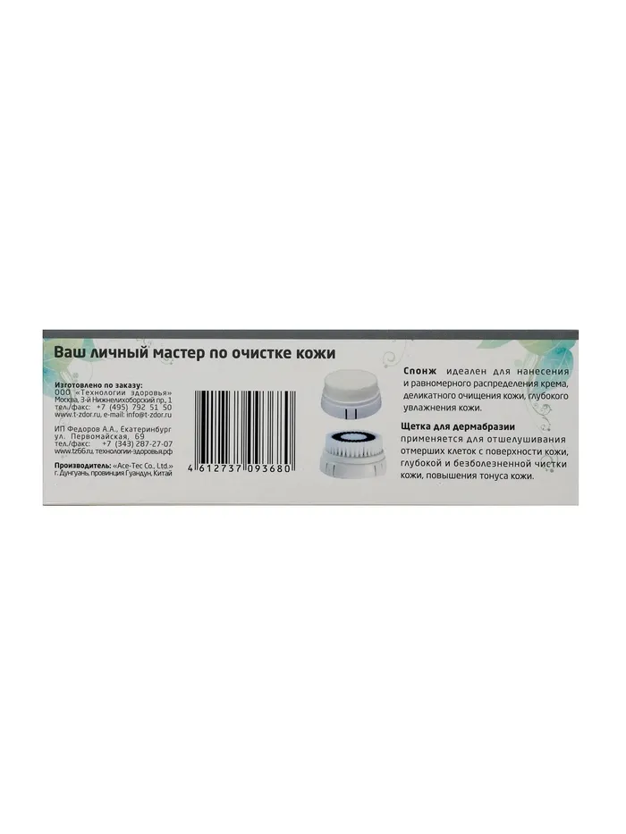 Массажёр оснащён тремя насадками: щёткой для глубокой очистки, спонжем для деликатного ухода и дополнительной насадкой для массажа. Работая от батареек, он позволяет легко и удобно использовать его в любом месте. Компактный размер делает его удобным для использования и хранения.
