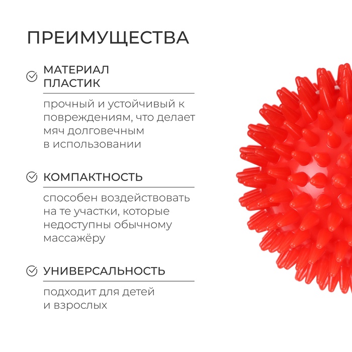Массажер ONLYTOP «Ёжик», d=9 см, 90 г, красный — Характеристики
