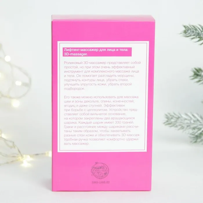 Роликовый 3D-массажёр представляет собой простой, но при этом очень эффективный инструмент для комплексного массажа лица и тела. Он помогает разгладить морщины, подтянуть контуры лица, убрать отёки, улучшить упругость кожи, убрать второй подбородок.