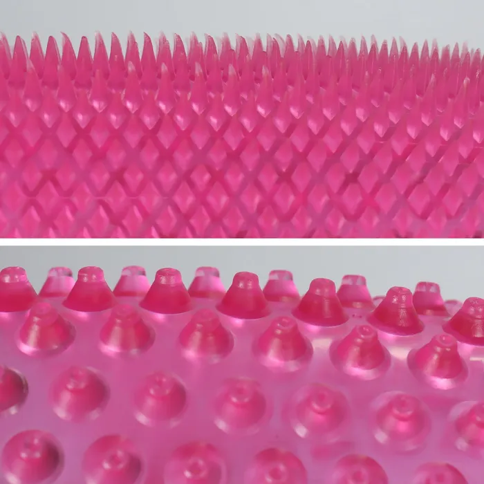 Жёсткие пирамидки применяются для антицеллюлитного массажа. При таком воздействии сосуды расширяются, улучшается кровообращение, активизируется питание кожи и деятельность заложенных в ней желёз.