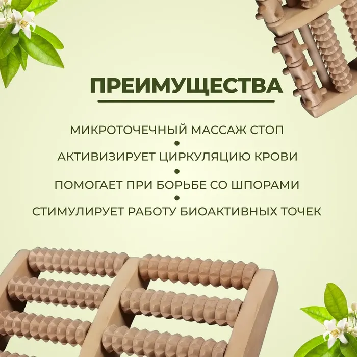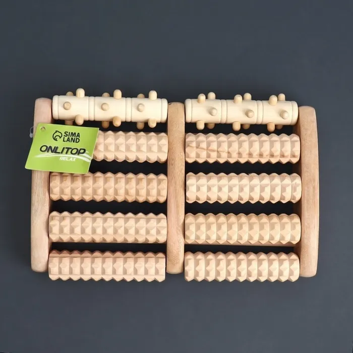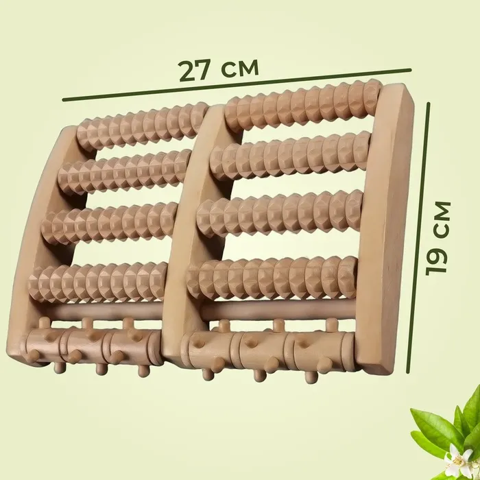 Массажёр «Барабаны», 5 рядов с шипами, 27 × 19 × 5 см, деревянный — Характеристики