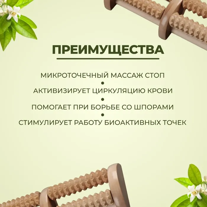 Этот массажёр отлично подойдёт для расслабления мышц ножек после активного дня и физических нагрузок. Он улучшает кровообращение, убирает отёки и успокаивает благодаря деревянным барабанам с шипами.