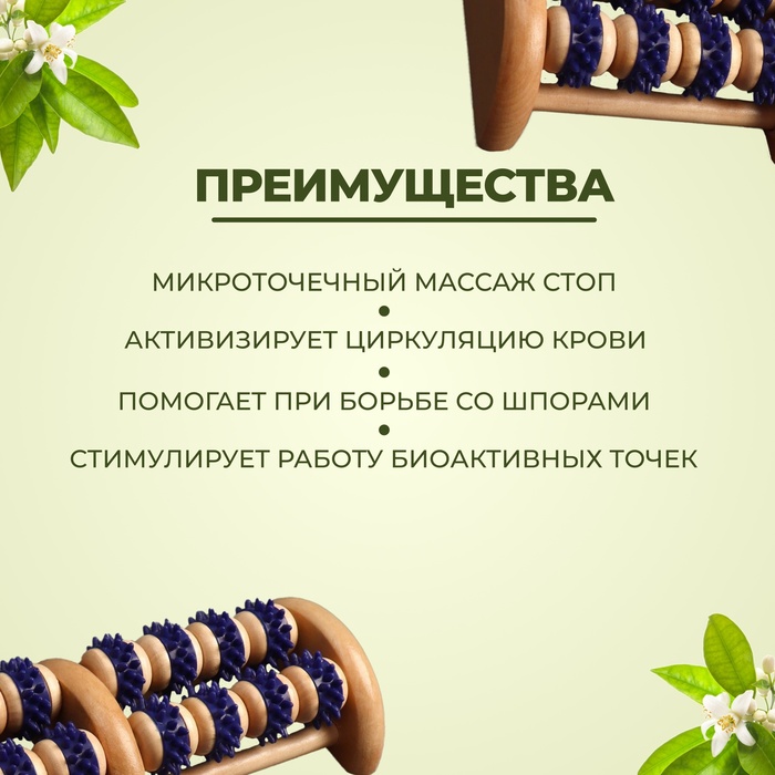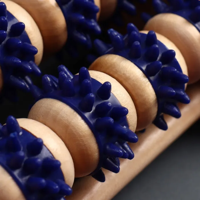 Этот массажёр отлично подойдёт для расслабления мышц ножек после активного дня и физических нагрузок. Он улучшает кровообращение, убирает отёки и успокаивает благодаря деревянным барабанам с шипами.