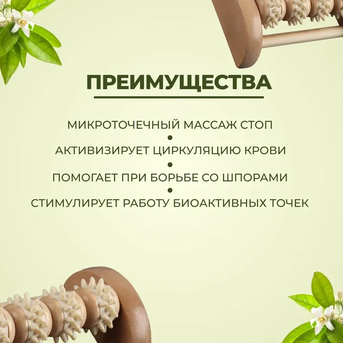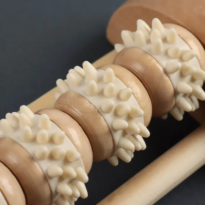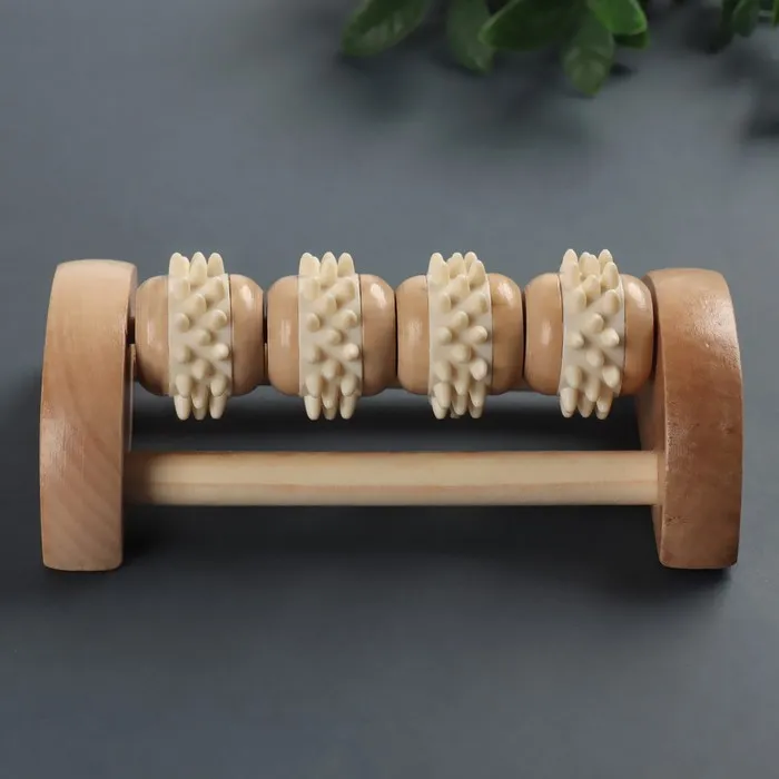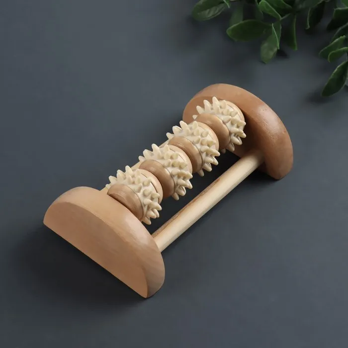 Этот массажёр отлично подойдёт для расслабления мышц ножек после активного дня и физических нагрузок. Он улучшает кровообращение, убирает отёки и успокаивает благодаря деревянным барабанам с шипами.
